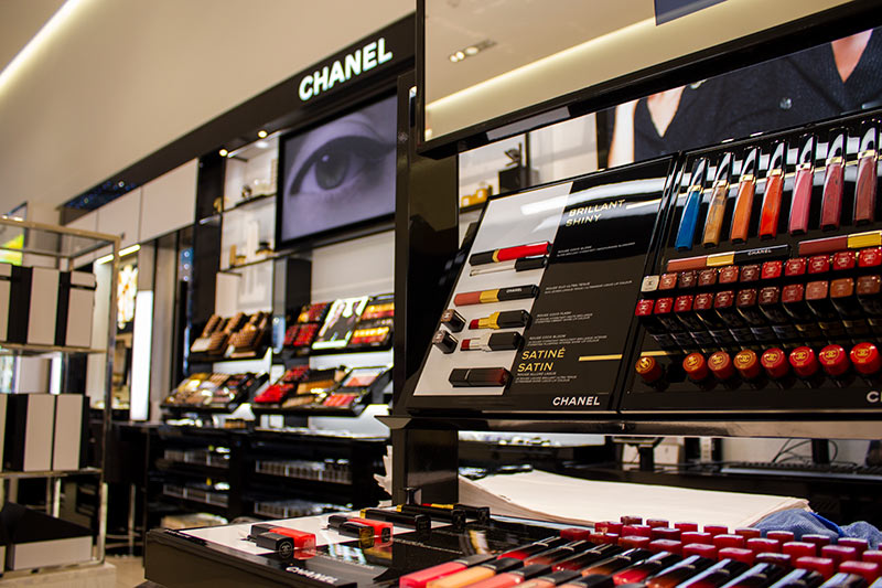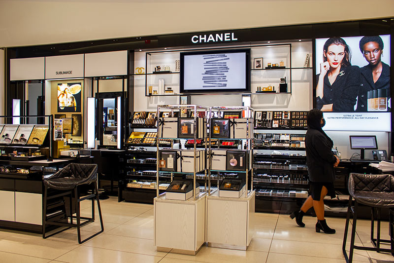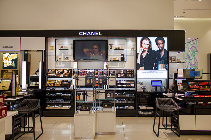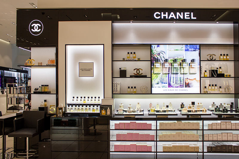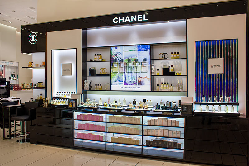The design of this shop creates a welcoming and easy to navigate shopping experience that immerses customers in the bold and elegant Chanel brand.